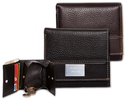 Porte monnaie en cuir de vachette souple à personnaliser par une gravure sur une plaque en