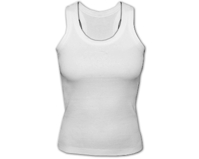 Débardeur femme blanc : polyester 190 g/m², toucher coton, coupe moulante, dos nageur, décolleté arrondi, coutures latérales.