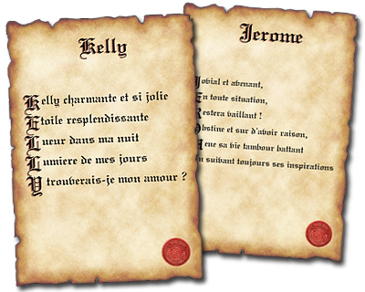 Découvrez le poème de votre prénom effet parchemin. Le début de chaque phrase commence par les lettres de votre prénom.