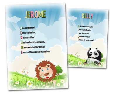 Le Poème du prénom de votre enfant illustré avec l'animal de votre choix.
