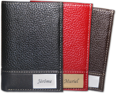 Porte cartes de crédit en cuir de vachette souple noir ou marron pour ranger vos cartes de crédit mais également vos billets, papiers. A personnaliser avec des initiales, un prénom, un nom, une date,... sur une plaque en métal argenté ou doré.