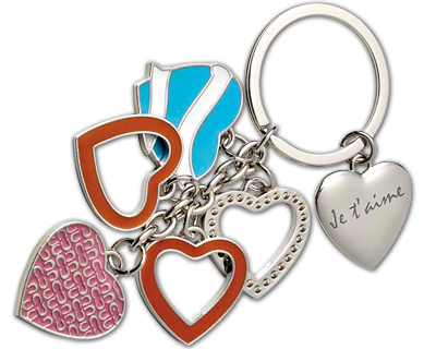 Porte-Clés Breloque 5 Coeurs Personnalisé par la gravure d'un prénom.