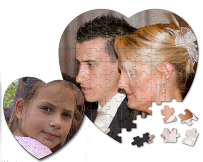 Puzzle en forme de coeur avec la photo de la ou des personnes que vous aimez. Puzzle en carton blanc, surface brillante. Objet incontournable de la Saint Valentin !