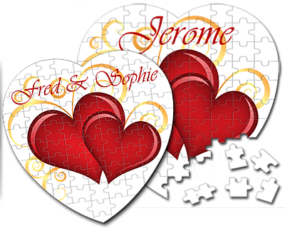 Puzzle en forme de coeur avec le ou les prénom des personnes que vous aimez.Puzzle en carton blanc, surface brillante. Objet incontournable de la Saint Valentin !