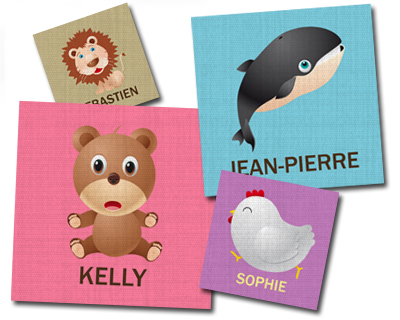 Tableau avec un animal aux choix et le prénom de votre enfant