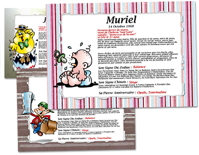 comportant : provenance du prénom, histoire du prénom, Traits de caractère du prénom, Horoscope, Signe chinois, Pierres d'anniversaire